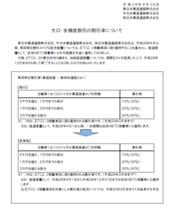 ETCコーポレートカードの「大口・多頻度割引の割引率について」 NEXCOより発表がありました。(平成28年9…