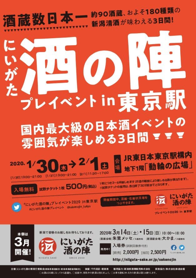 にいがた酒の陣、東京駅で開催! 新潟県は酒蔵数日本一 今回は90社の酒蔵が180酒類の日本酒を東京駅に出展! …
