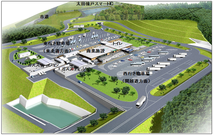 7/28 15:00から開業!! パーキングエリアには上下線から利用できるフードコートやショッピングコーナーが…