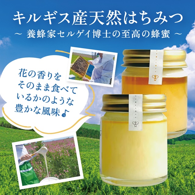 キルギス共和国イシク・クル地方の大自然で育つ花蜜は酵素やビタミン、ミネラルなどの栄養をたっぷり含んだ非加熱・無添加・無農薬の健康食品です。