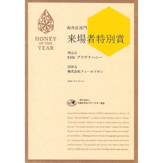 ⭐︎ハニー・オブ・ザ・イヤー来場者特別賞受賞