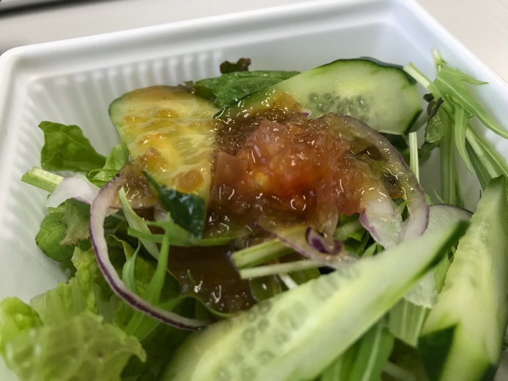 しかし、ご飯の量も多かったせいかそのうちに「ふー」と苦しそうな声が・・・しかもサラダ付きだったのでかなり満腹感!