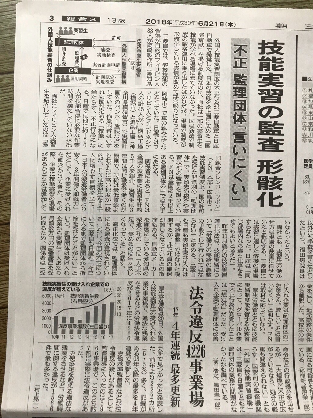 最近の新聞などで、技能実習生に関連する記事が多く見かけます。