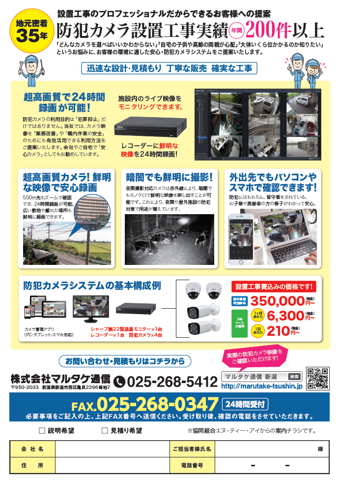また、新潟県内の組合員様に限ってとなりますが、防犯カメラ取付工事を特別価格で協賛いただきました。