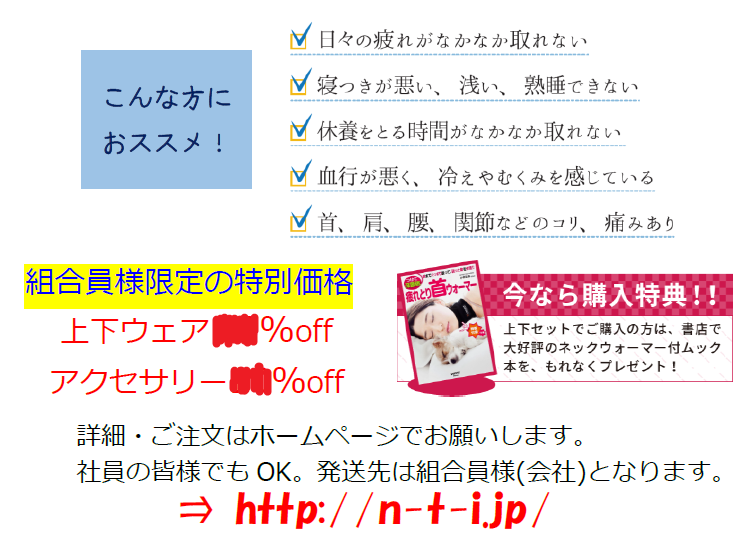 組合員限定の特別価格○○%引きでご提供しています。