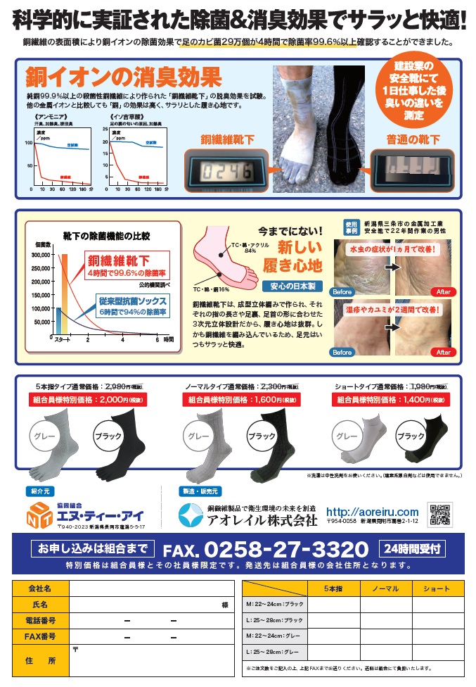 9月の請求書にも、銅繊維靴下のご案内を同封いたしました。