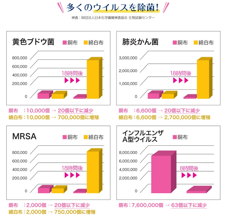 銅フィルターで各種ウィルス抗菌効果も検証済み!