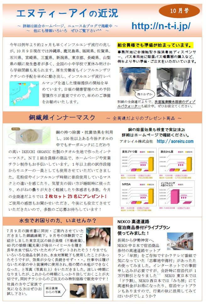 今回も、7月9月の請求書に同封させていただきました銅繊維靴下の体験談も掲載。