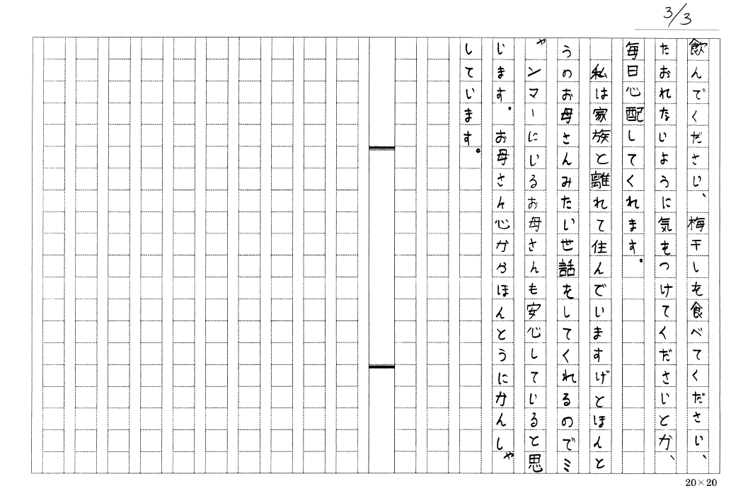 作文も拝見し、文字からも文章からも気持ちがひしひしと伝わる内容。