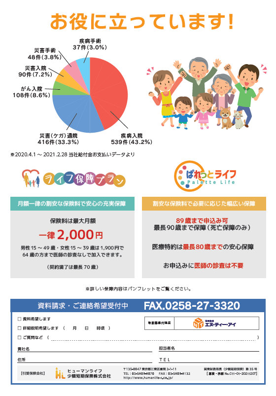 今月も少額短期保険のご案内も別紙で同封しております。