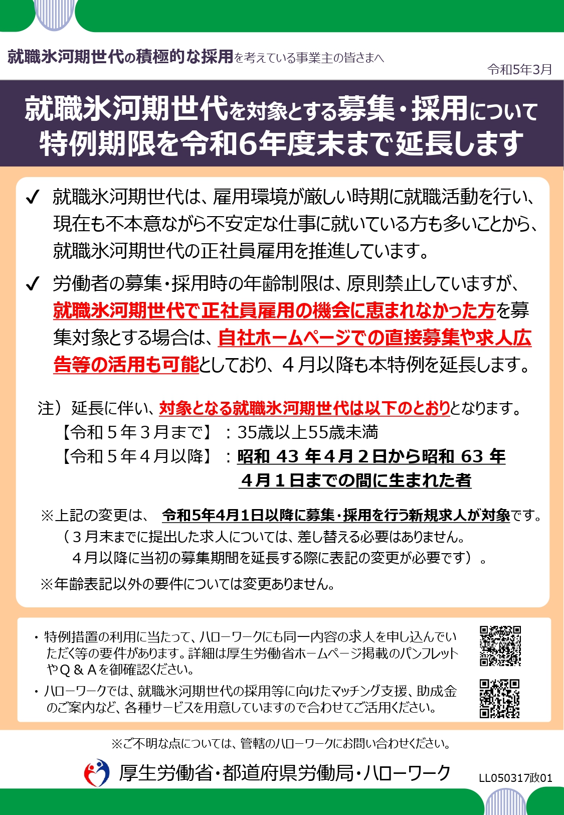 就職氷河期世代の正社員雇用、特例期限を令和6年度末まで延長